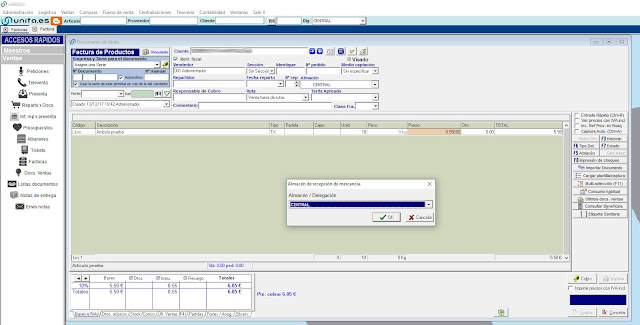 Al realizar una venta a un cliente que también es una de nuestras empresas, se genera un documento de compra para esa empresa, mostrándonos una pantalla para elegir el almacén de entrada.