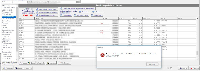Corrección de error (Access Violation) cuando se sobre escribia un nuevo codigo de articulo sobre otro codigo ya introducido (sustituir el codigo).