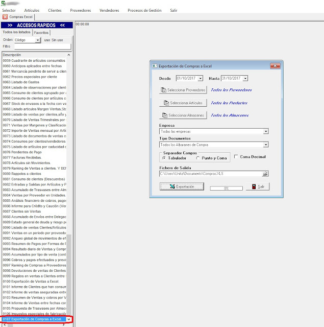 Posibilidad mediante un listado de realizar una exportación a Excel del listado 107 (Detalle de compras a proveedores)
