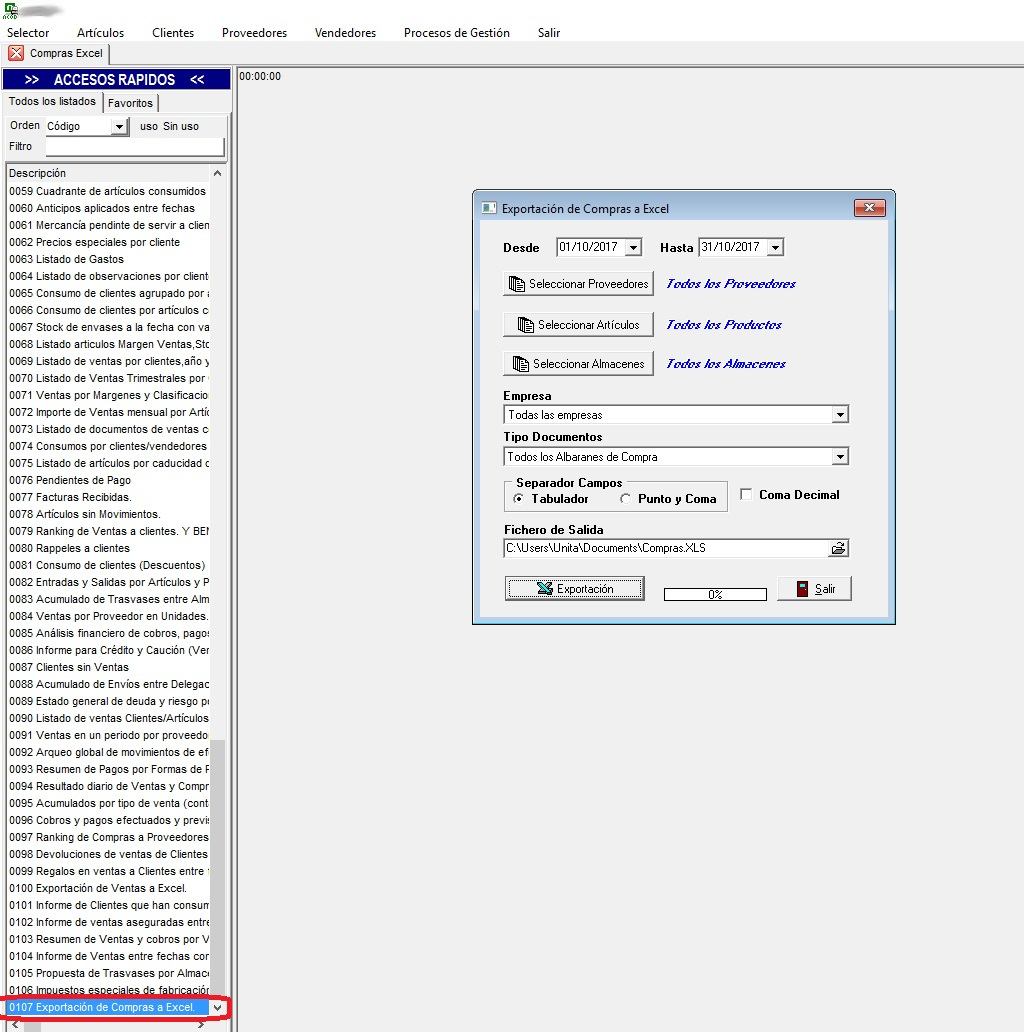Posibilidad mediante un listado de realizar una exportación a Excel del listado 107 (Detalle de compras a proveedores)