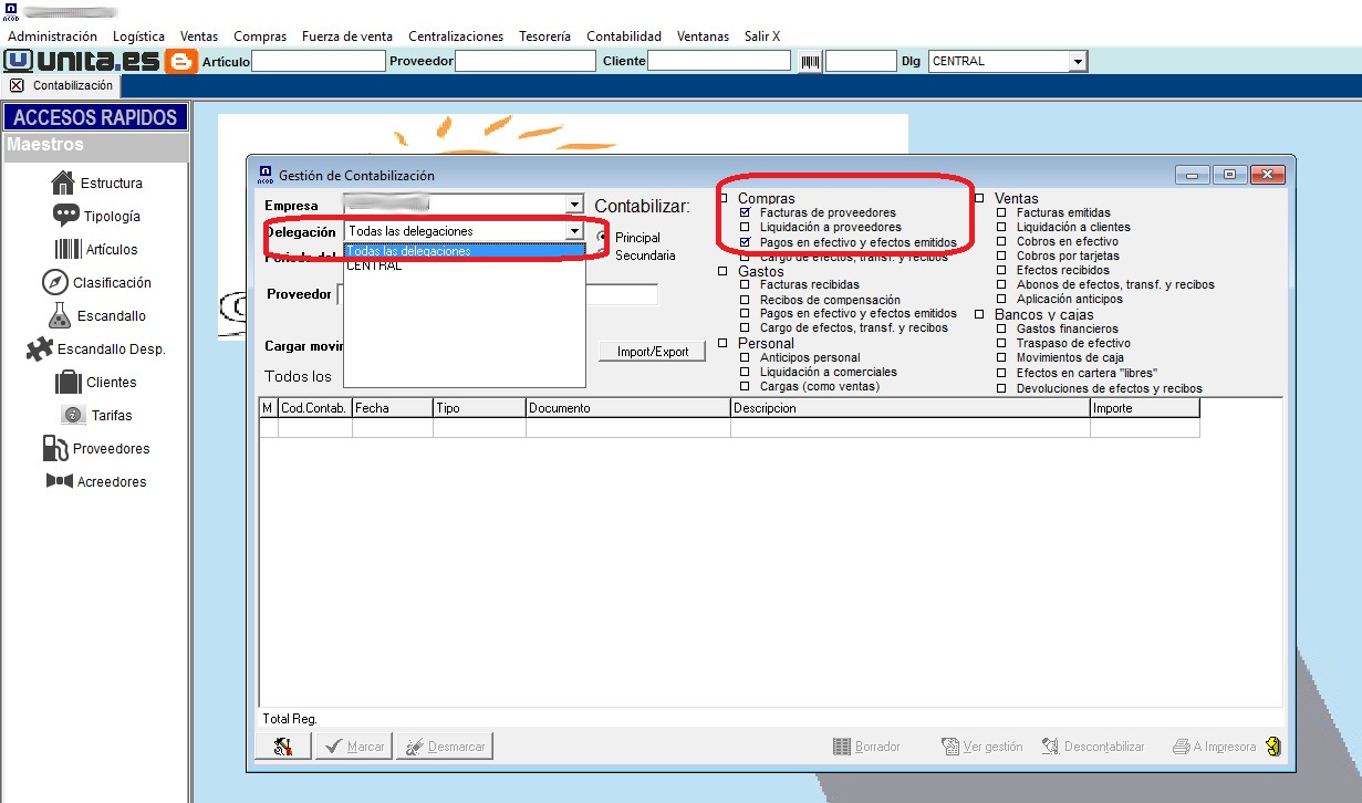 No funcionaba filtro de delegacion en la contabilizacion de facturas y pagos a proveedor