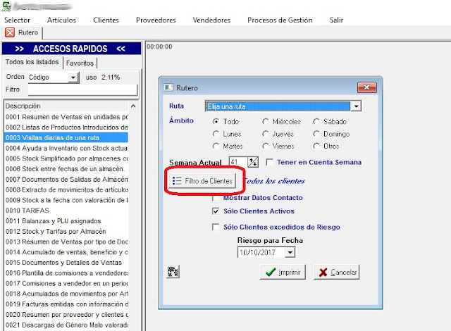 Accesos Rapidos –> Utilidades –> Listados –> Listado 3 (Visitas diarias de una ruta)