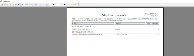 Desde el mantenimiento de preventas, se podrá sacar un informe de los artículos incluidos en las preventas seleccionadas previamente.