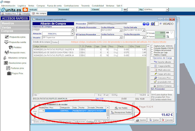 Mejorar la opcion de visualizacion y de recepcion de un pedido en un documento de compra. Se visualizaran los pedidos pendientes de recepcionar y los ya recibidos, en distintas pestañas. Se ha puesto un boton mas claro para asignar un pedido a la entrada y para poder consultar dicho pedido.