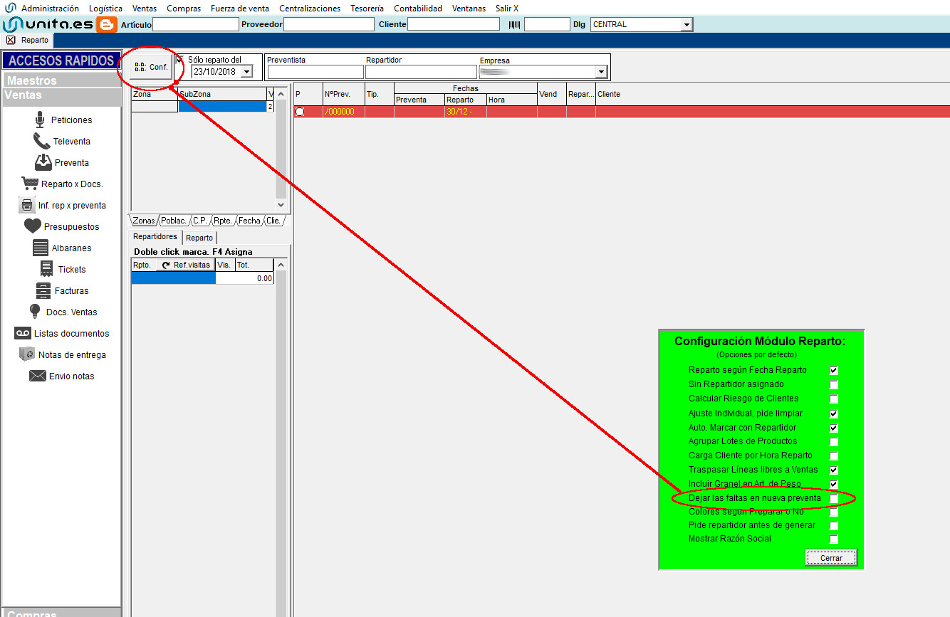 Ventas –> Gestión de Preventas –> Preparación del Reparto por Documentos