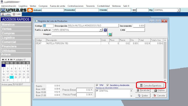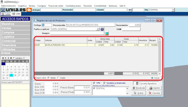 Logística –> Artículos y productos –> Fichero de Lotes de productos
