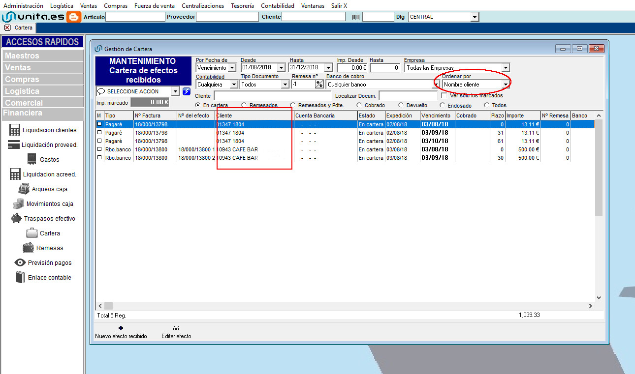 A partir de ahora se podrá ordenar la gestión de cartera, tanto por código (Cliente), como por nombre de cliente