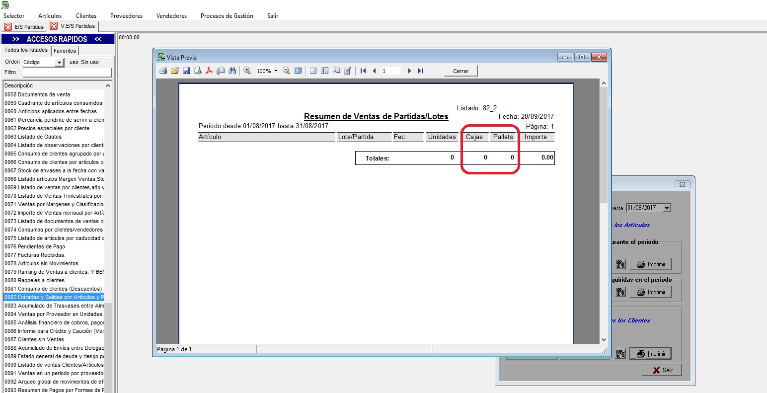 Accesos Rápidos –> Utilidades –> Listados –> Listado 82