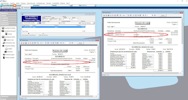 Al hacer un traspaso de una caja origen, a una caja destino en negativo, se debia hacer una entrada en el origen y una salida en el destino. La aplicación solo registraba uno de los movimientos. Esto ha quedado corregido.