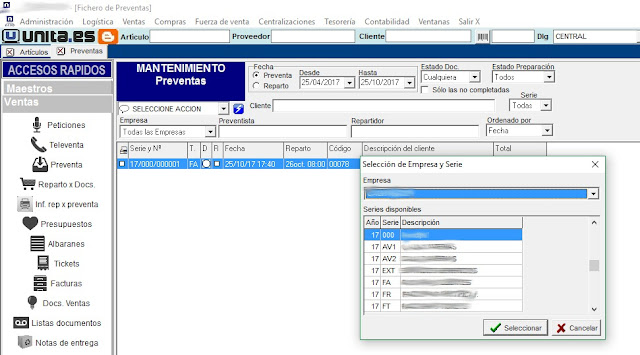 Poder elegir la serie y la empresa destinataria de un duplicado de una preventa, o de la generación de una nueva por las faltas de otra.
