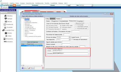 - En Administracion –> Empresa –> Estructura Comercial–> Empresas–> Financiera, tendremos que tener rellenos los campos de «Facturacion entre empresas»