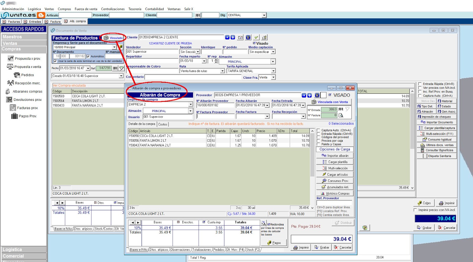 Cuando se vende a una empresa del grupo, se crea el albarán de compra automaticamente.