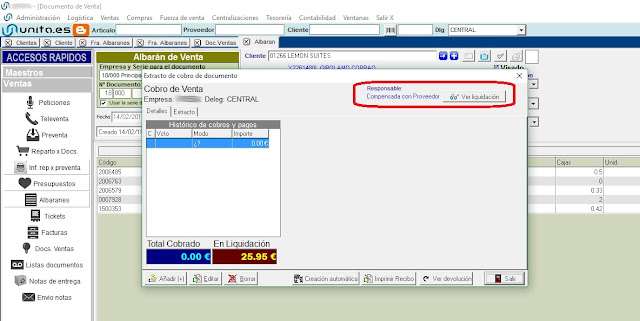 Cuando una venta es compensada con deudas a proveedor (en una liquidación de proveedores), se podrá consultar dicha liquidación desde la pantalla de cobros del documento de venta.