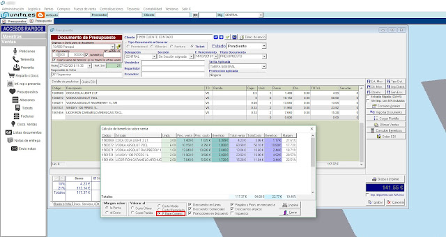Se añadio la posibilidad de poder sacar beneficios en Presupuestos de ventas a partir del Precio Base comercio.