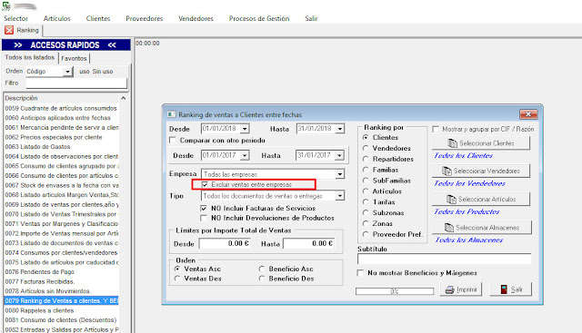 El Check permite en en listado 79, incluir o no , las ventas entre empresas. Esto se debe a que si en la aplicación se gestionan las ventas de las dos empresas entre las que se ejecuta la operación, a la hora de consultar ventas totales, puede haber duplicidades (la venta entre empresas + la venta final al cliente)