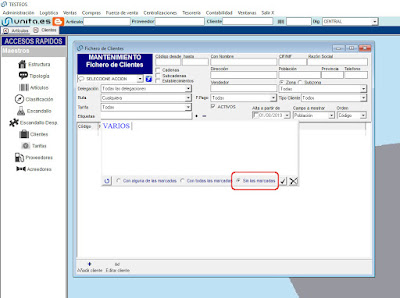 Desde el mantenimiento de clientes, antes solo se podían listar aquellos clientes que incluyesen una o varias etiquetas usadas. Ahora hay la posibilidad de listar clientes que no contengan una etiqueta.