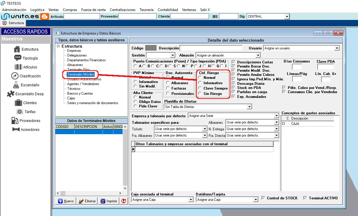 Administración –> Empresas –> Estructura Comercial –>Terminales Móviles