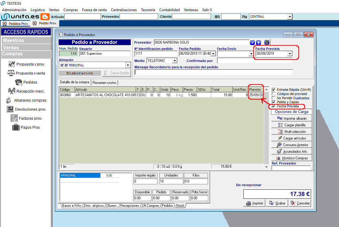 Se podrá asignar una fecha prevista de entrega de mercancía al pedido completo, y de forma individual a cada linea que forma el pedido.