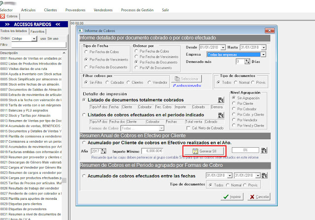 Nuevo listado de cobros en efectivo en el módulo de Suministro Inmediato de Información. (Dentro del listado numero 34: Gestiones de Cobro)