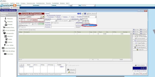 Ventas –> Gestion de Presupuestos –> Presupuestos y Reservas