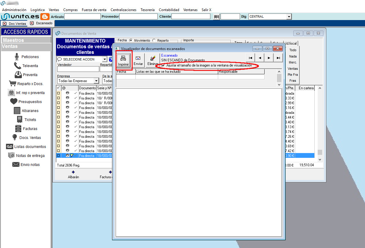 A partir de esta actualización se podrá ajustar a la pantalla de previsualización, el tamaño de la vista del documento ( o no), y ademas se ha puesto un botón de impresión directa desde esta pantalla de visualización.