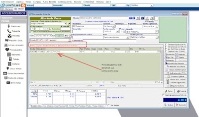 Ahora se puede editar la descripción que los artículos tienen y cambiarla, de forma puntual, por otra editada por nosotros. En cualquier documento de venta pulsando F3 cuando estamos situados en la descripción del articulo en cuestión..