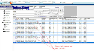 Posibilidad de marcar los artículos que se venden bajo pedido. Visualización en tarifas, ventas, preventas y presupuestos. Aparecerán con un color distinto debido al tratamiento distinto que deben de tener con respecto a los demás.