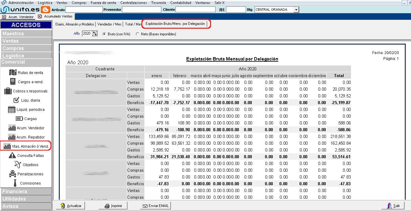 Se añade una nueva pestaña a esta opción, donde se mostraran, las ventas, compras, gastos y beneficios, de manera mensual y por las distintas delegaciones (Solo para quien trabaje con distintas Delegaciones)