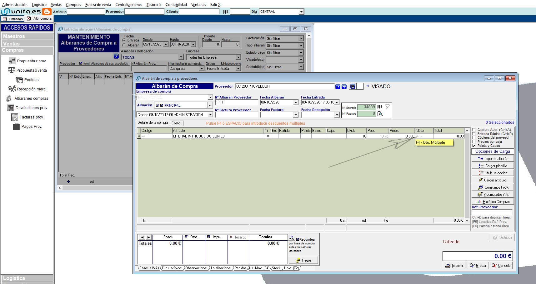 Compras –> Albaranes de Compras a Proveedores