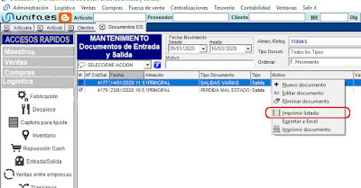 Posibilidad de imprimir resumen de movimientos marcando varios documentos de Entrada y Salida.