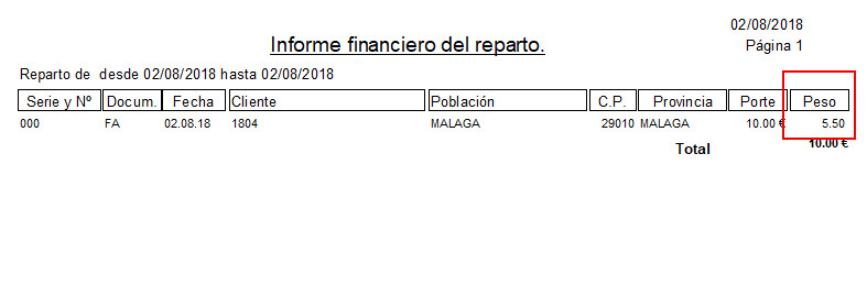 Tipo (Mejora, Nuevo, Bug):Mejora Fecha realización:20-07-2018 Tema:Se ha añadido el campo peso a la impresión del informe de portes, en […]